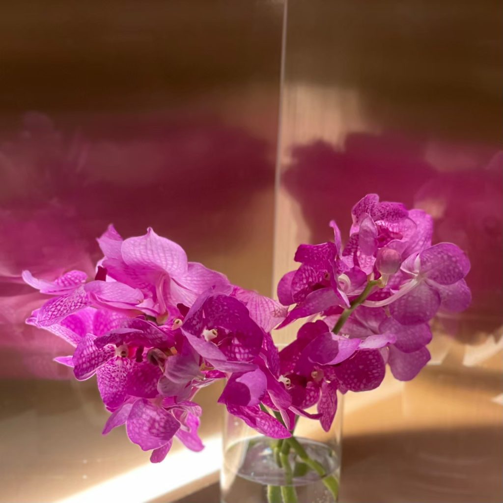 21切った花茎は花瓶で咲かせる! ちなみに切り落とされた 花茎は水挿しにしておけば、 ゆっくりと開花していきます。 室内でゆっくり開花を待つのも、 バンダの花の楽しみかと思い